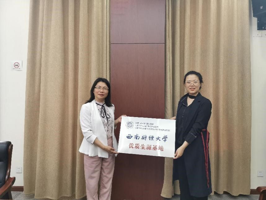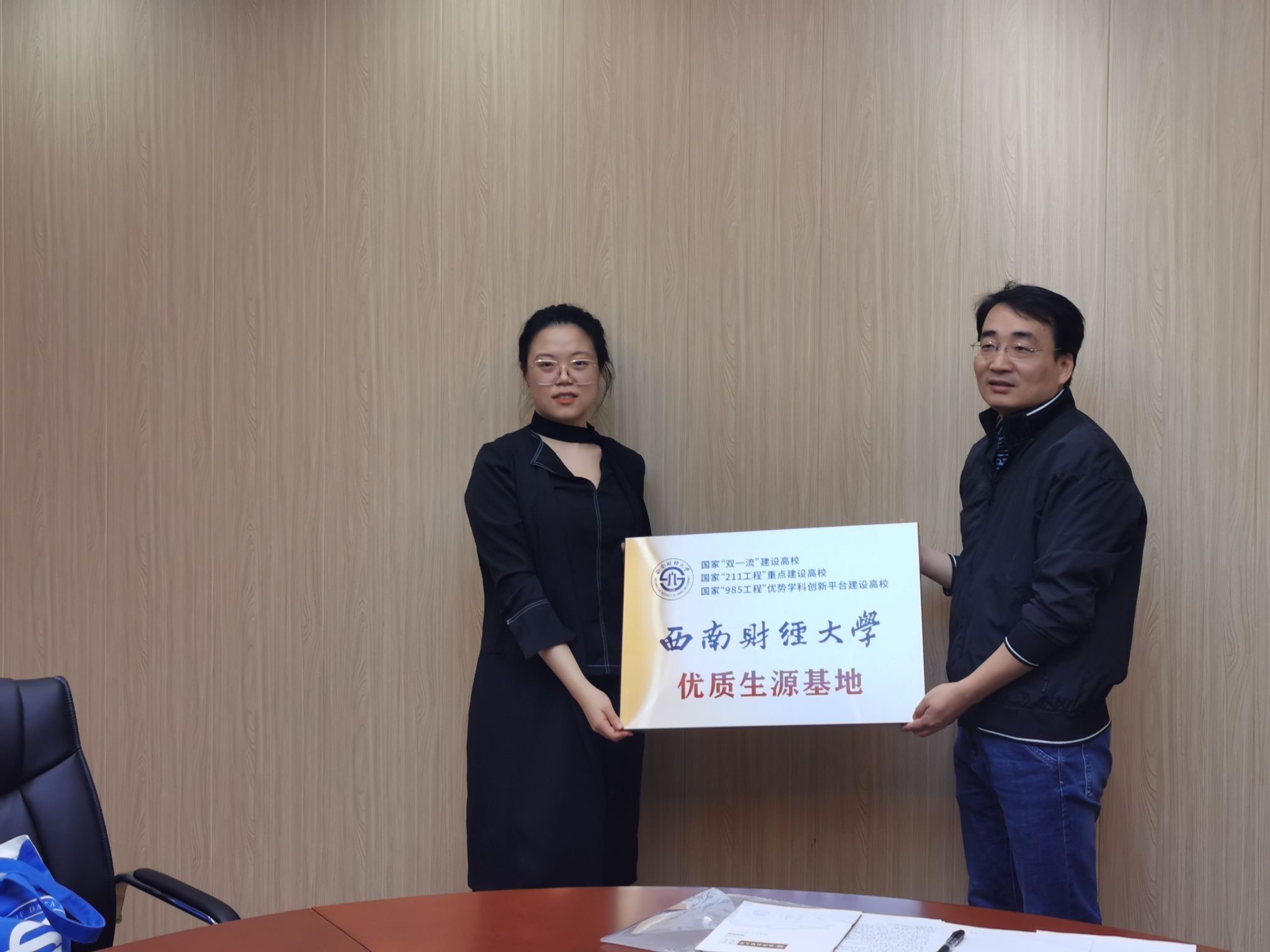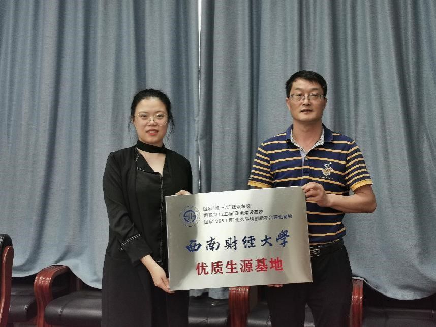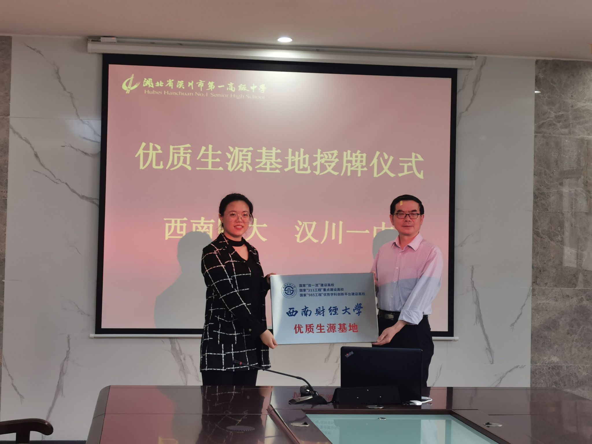 招生小组娄雅琪、易家维一行赴湖北省落实和推进优质生源基地建设工作,代表西南财经大学分别与湖北省重点中学汉川市第一高级中学、武汉外国语学校、武钢三中、华师大附一中、武汉市第三中学、鄂南高级中学6所学校签署优质生源基地协议,并授予“优质生源基地”牌匾。