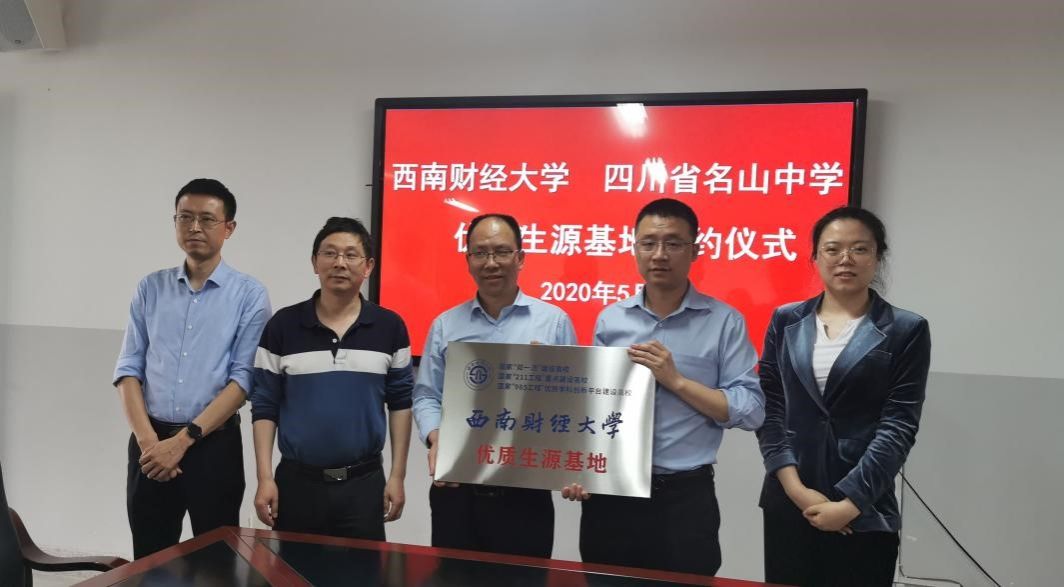 招生小组代表西南财经大学赴四川省雅安市名山中学,与学校签署优质生源基地协议并举行授牌仪式。名山中学校长赵荣博等学校相关领导参加了此次会议。