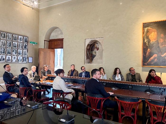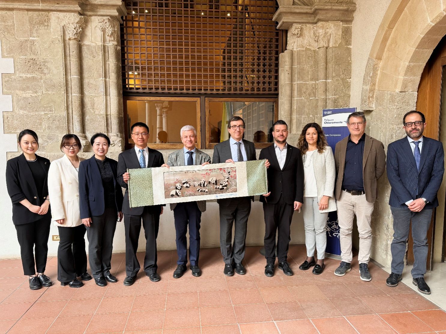 在意大利巴勒莫,代表团一行访问巴勒莫大学(University of Palermo,简称UNIPA),与校长马西莫·米迪里(Massimo MIDIRI)、副校长法比奥·马佐拉(Fabio MAZZOLA)、国际化方向校长代表、经济学和工商管理学位课程主席、国际关系合作部门负责人等校方高层进行会谈。会上,杨石磊院长重点阐述了西南财经大学的发展历程、学科重点与学术优势,提及学校促进与欧洲国家文化、学术交流的愿望,分析了学院的国际机遇与成就。双方共同回顾了合作历程,表达了加强学术联系的愿望,尤其在经济学、统计学、数据科学和金融科学等领域,期望通过学生交换、课程合作等协同创新举措,共同推进国际影响力和竞争力的提升。