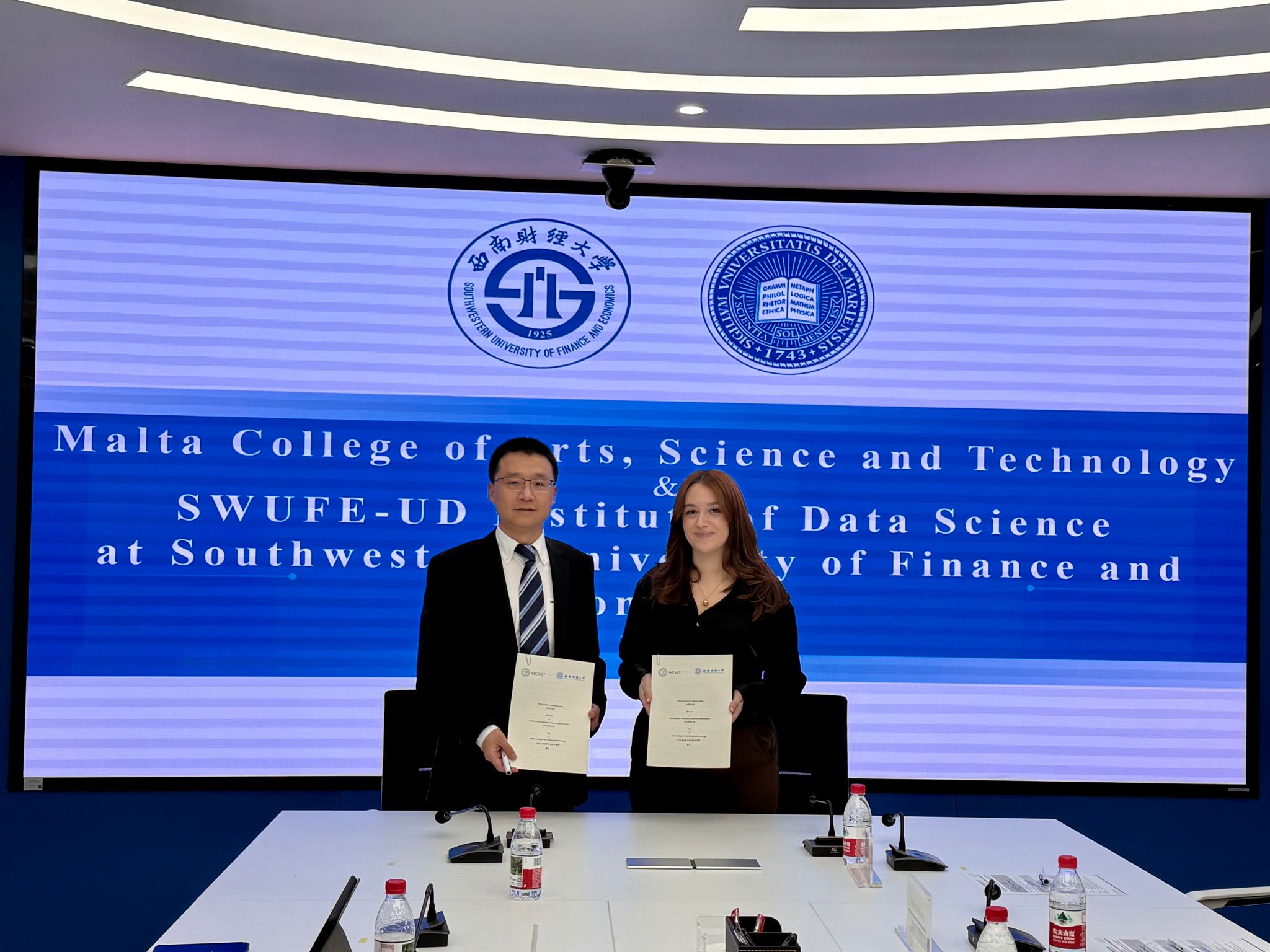 Maxine Micallef对学院的热情接待表示感谢,赞誉西财深厚的人文底蕴与AI赋能教学的前沿探索,详细介绍了MCAST在国际认证、课程模块化设计及毕业生欧陆就业通道等方面的优势。Karl Farrugia Wismayer重点说明马耳他政府为国际学生提供的实习与职业衔接支持。马方表示,愿以此次回访为契机,与西南财经大学在暑期学校、学生交流等领域开展深度合作,共促中欧教育互通。