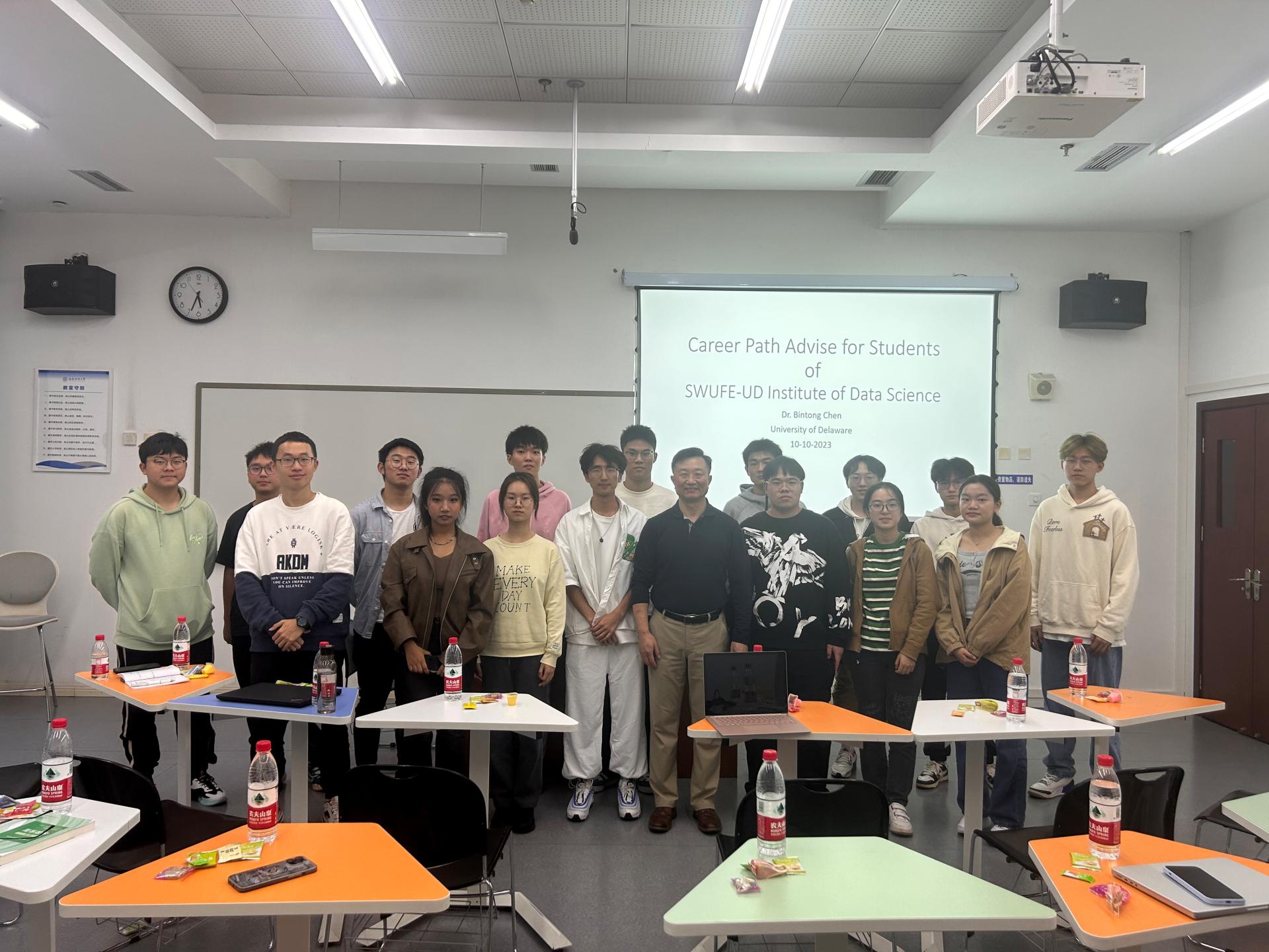 10月10日,陈教授向到场的同学深度介绍了特拉华大学金融服务分析博士项目的信息,并就“是否应该读博”“如何申请博士”等问题展开分享交流。分享会开始前,陈教授分别让到场的同学们进行个人规划介绍,便于更加了解西财特院学子。此外教授中英双语分享个人读书经历,如何考上世界顶级商学院,以及成为特拉华大学教授的原因契机。