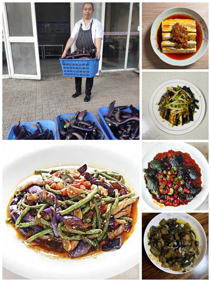 劳动实践小组同学代表学院赠送了50多斤茄子给学校后勤食堂,与全校师生分享劳动的果实。学院选修了《果蔬技能实训》课程的同学,把新鲜的茄子带到了烹饪技能实训基地,把茄子做成了一道道美味佳肴。同学们通过全程参与种、摘、洗、切、烹所有过程,感受到自己动手的快乐,切身体会劳动的意义。