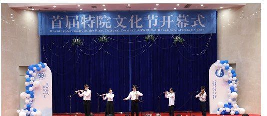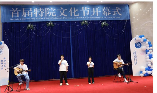 在随后的文艺表演中,从古风舞蹈“予君书”到民谣串烧演唱“Five hundred miles to Chengdu”,从原创中英文诗朗诵“幸会,柳林风光”到中西器乐合奏“大鱼”,同学们展现了自己对文化交流互鉴的深刻理解和特院学子的文艺造诣。学校光华合唱团也应邀参加开幕式表演,一曲“光华里的你”唱出了西财校园里莘莘学子的青葱岁月。参演人员携手为观众们奉上了一场精彩纷呈的视听盛宴。