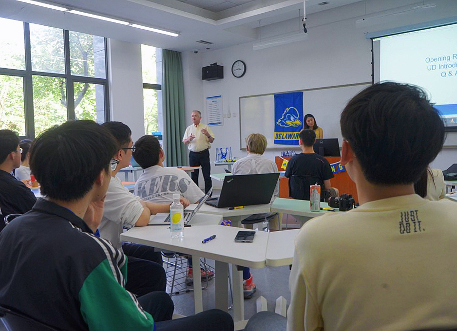 在格致楼举办UD Blue Hen Open House见面日活动,美方副院长Rick Andrews教授与美方教务协调员Dora Tseng作为嘉宾出席,与学院学子深度交流,活动在友好、欢乐的氛围中成功举办。