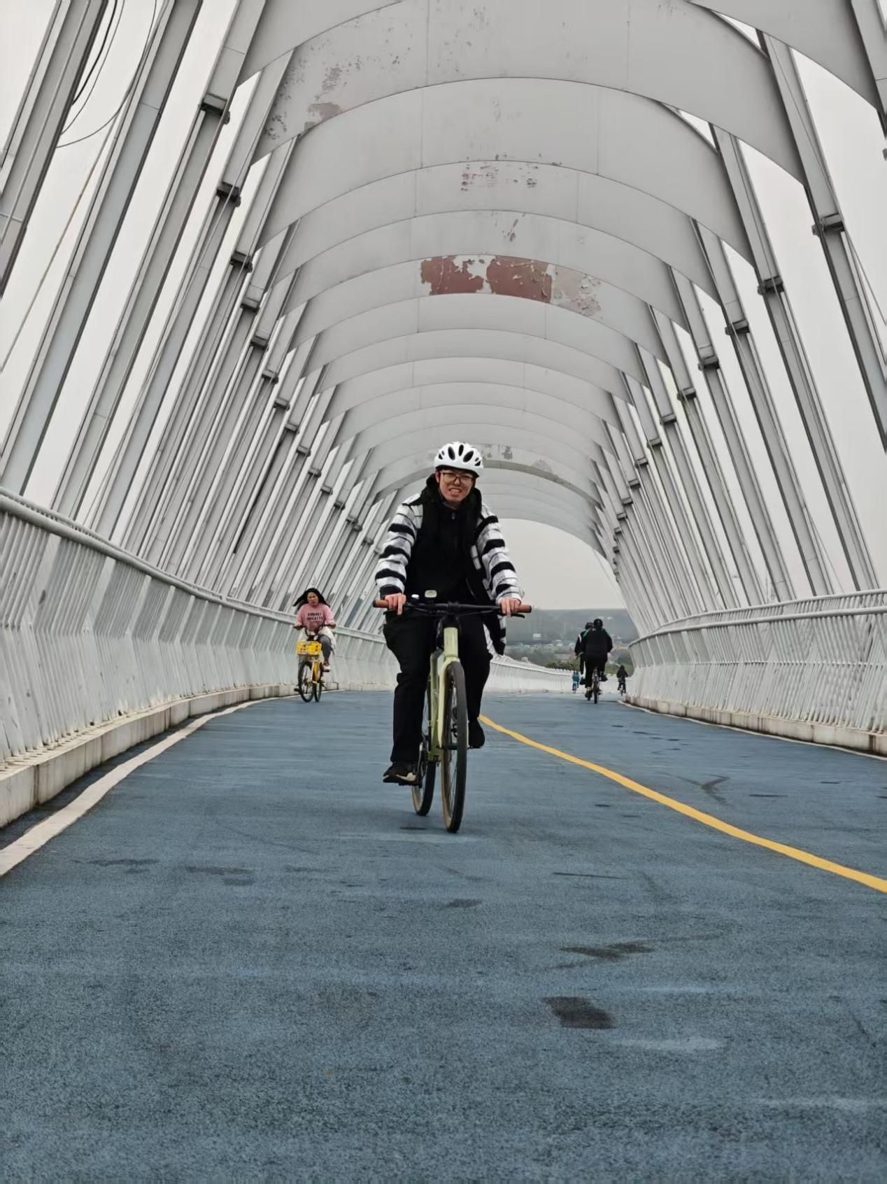 刘适玮同学:“在参加第一届骑行活动之前,我并没有挑战过一百公里以上的骑行,是学院的活动让我有了挑战的勇气。活动中我和John老师轮流破风、相互鼓励,完成了我的第一次百公里骑行,这是对自我挑战成功的最好证明。有了第一次的经历,当我看到第二次骑行活动的通知之后,我不像第一次报名时还有些犹豫,立即填写了报名信息。第二次活动中,杨石磊院长带领我们冲锋在前, 一路上虽感疲惫,但是在院长的鼓励下完成了骑行。通过学院组织的骑行活动,我感受到了长途骑行的乐趣,不仅有路过美丽的风景,更有身旁队友的陪伴”。