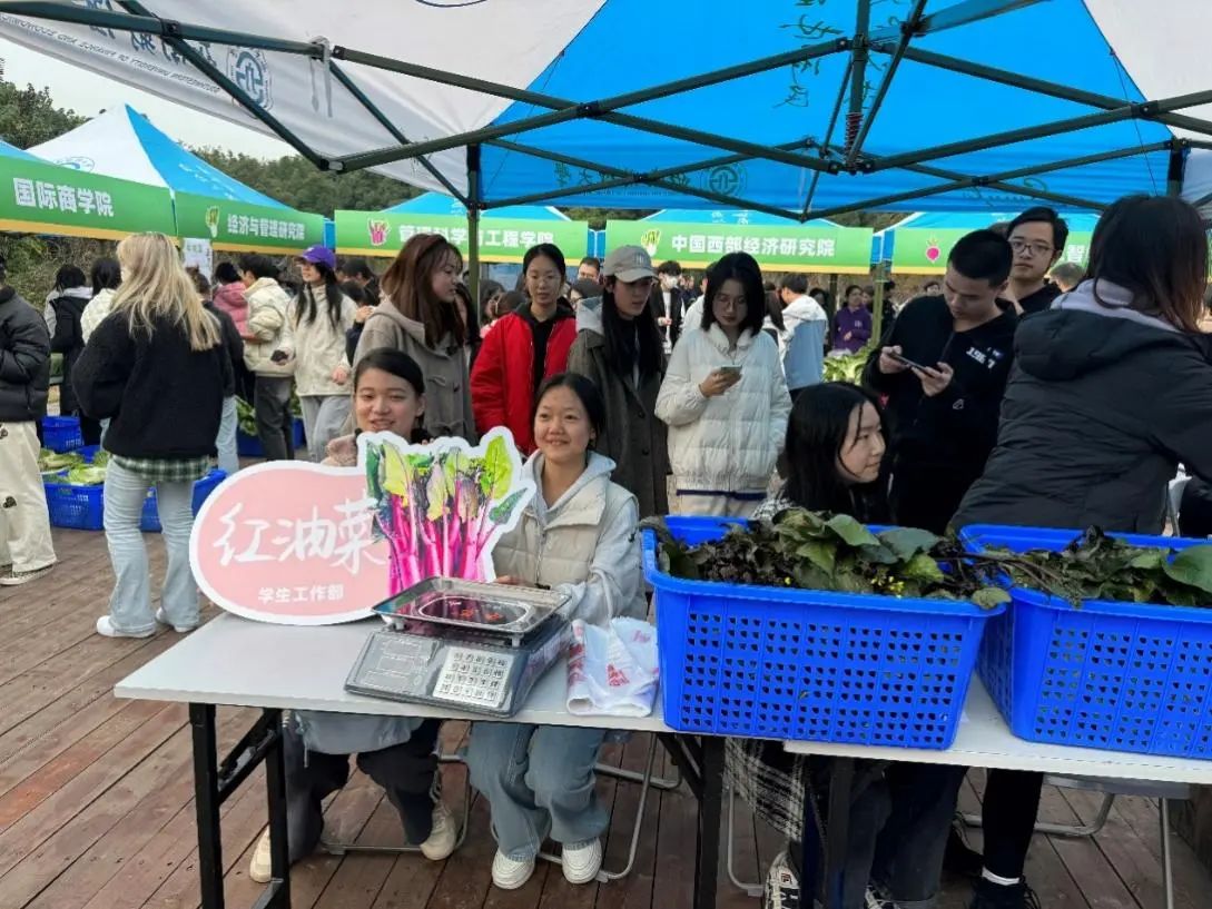 劳动实践队的同学们参加了学校举办的“SWUFE劳动集市”,整个集市上摆满了新鲜的蔬菜,琳琅满目。“数据伊甸园”的红油菜吸引了很多顾客,多多彩票