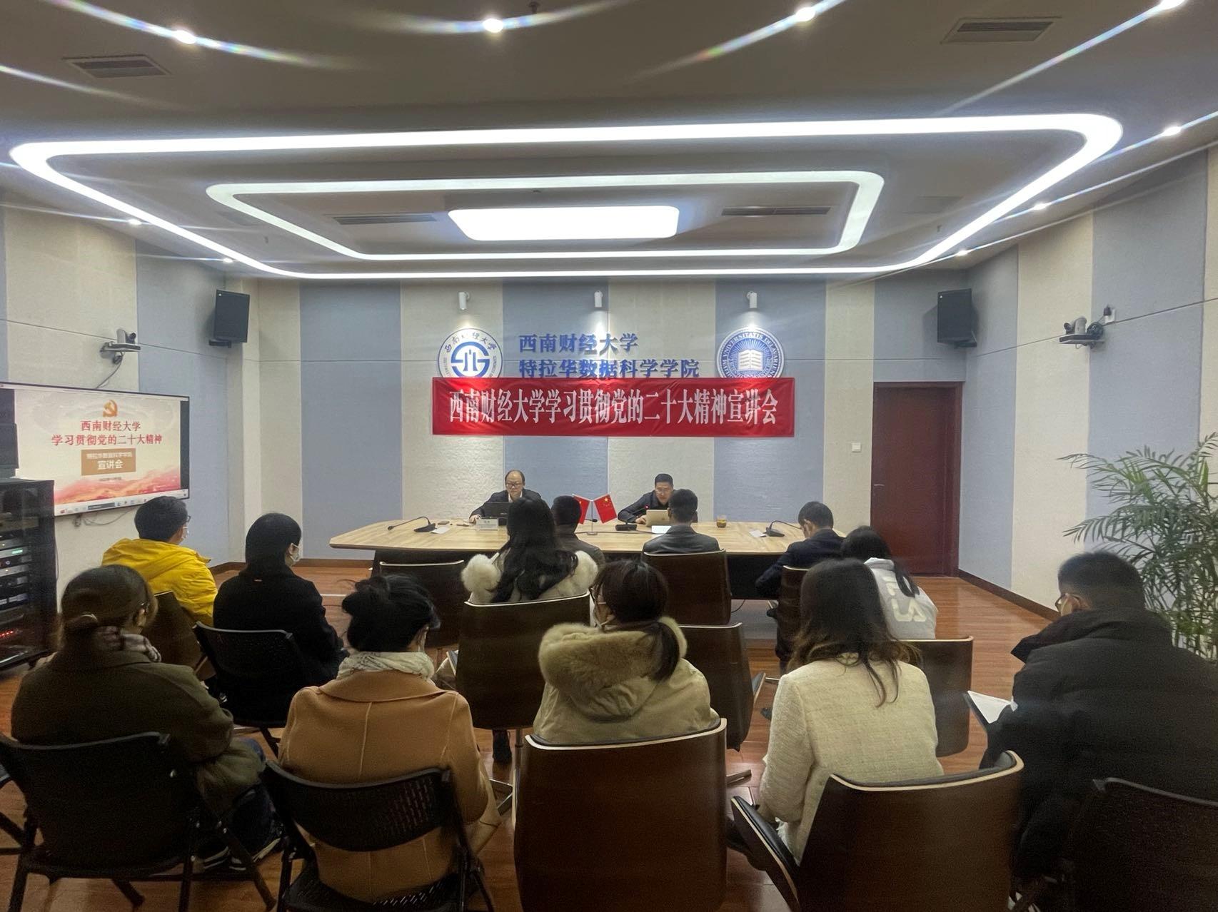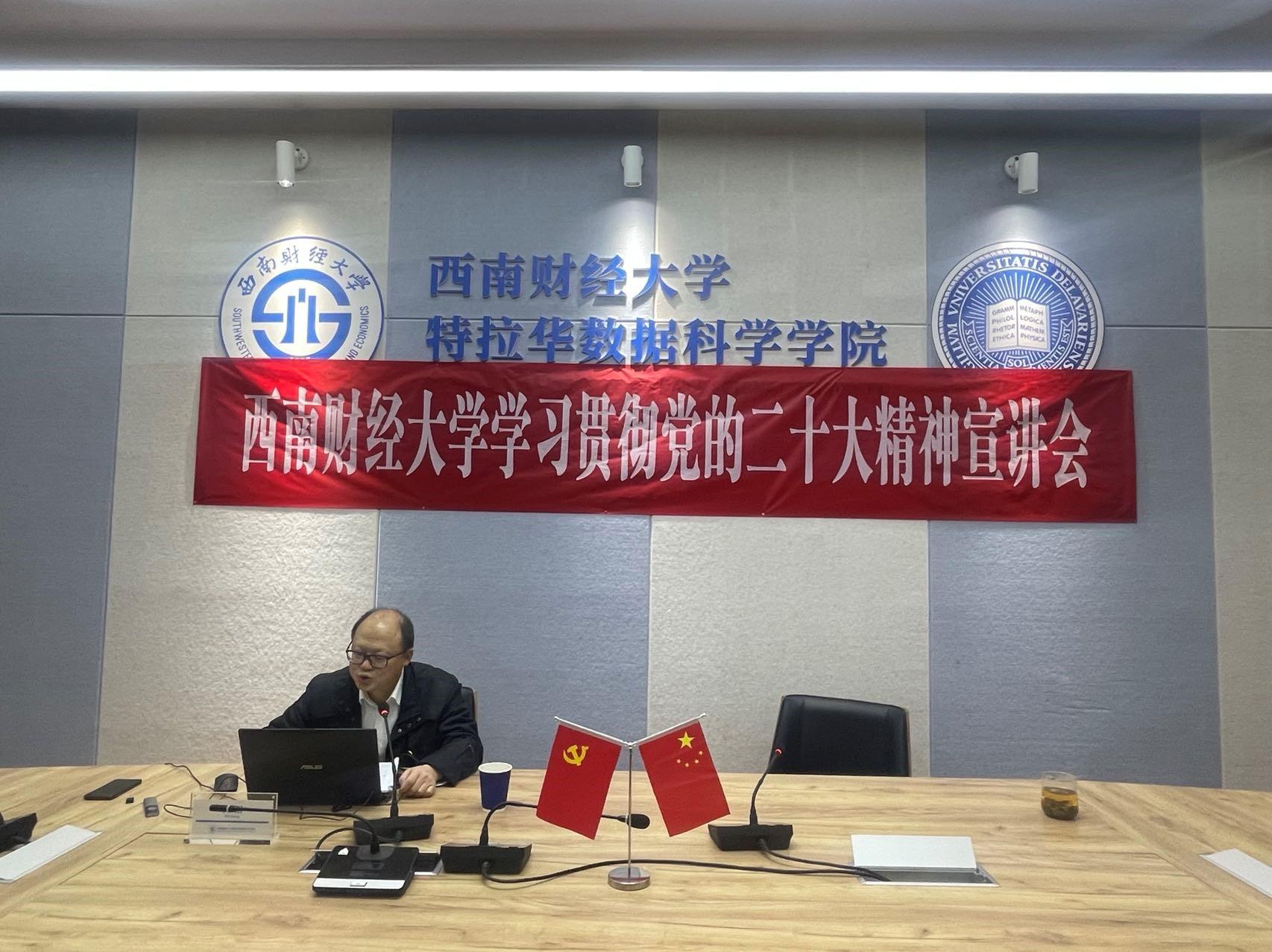 他强调,深入学习领会党的二十大精神是当前和今后一个时期的首要政治任务,学习二十大精神应该同以坚决维护习近平总书记党中央的核心、全党的核心地位结合起来,同认真学习《习近平谈治国理政》第一卷到第四卷结合起来,同学习贯彻习近平总书记重要讲话、重要指示精神结合起来,切实把二十大的精神贯彻到学校和学院事业发展的全方面、全过程。在学院党总支的领导下,应迅速掀起学习宣传贯彻落实党的二十大精神热潮,坚定推动党的二十大决策部署在学院落地落实、见行见效,为助力“现代化”“高质量”“新财经”“双一流”建设,为加快财经特色鲜明的世界一流大学建设作出新的更大贡献!