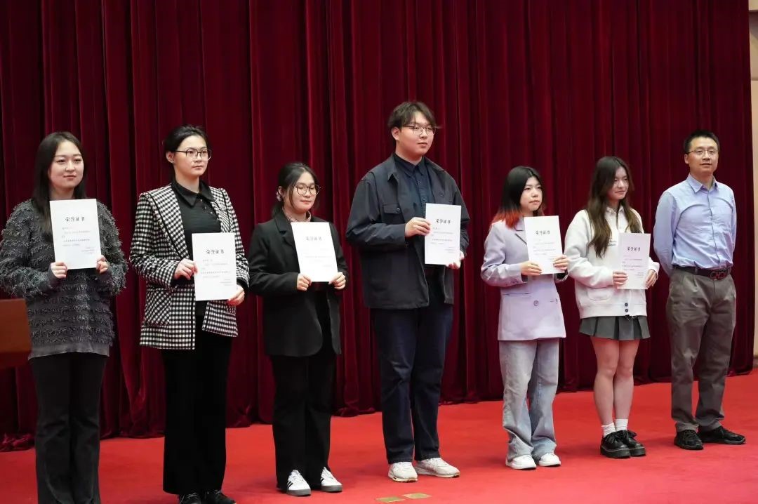 最后,获奖学生代表陈志杰发言。他对学院表达了诚挚的感谢,并分享了大学生活的经验。陈志杰号召同学们要惜时如金、孜孜不倦,在学习上下真功夫、苦功夫,同时也要积极参加各项社会实践,突出主干、择其精要,努力成为德智体美劳全面发展的社会主义建设者和接班人。