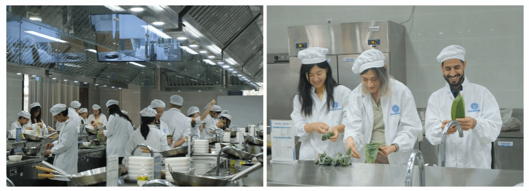 于柳园食府三楼烹饪技能实训基地,精心策划并举办了 "粽情端午,共品文化" 中外文化交流活动。此次活动由学院分工会携手团委学生会共同组织,美方教师团队、学院行政人员、学生代表及国际留学生齐聚一堂,在端午习俗的沉浸式体验中,共叙文化交融之美。