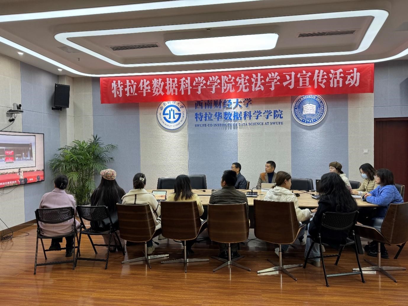 院领导和全体教职工在G101视频会议室参加国家宪法日教育系统“宪法晨读”活动。