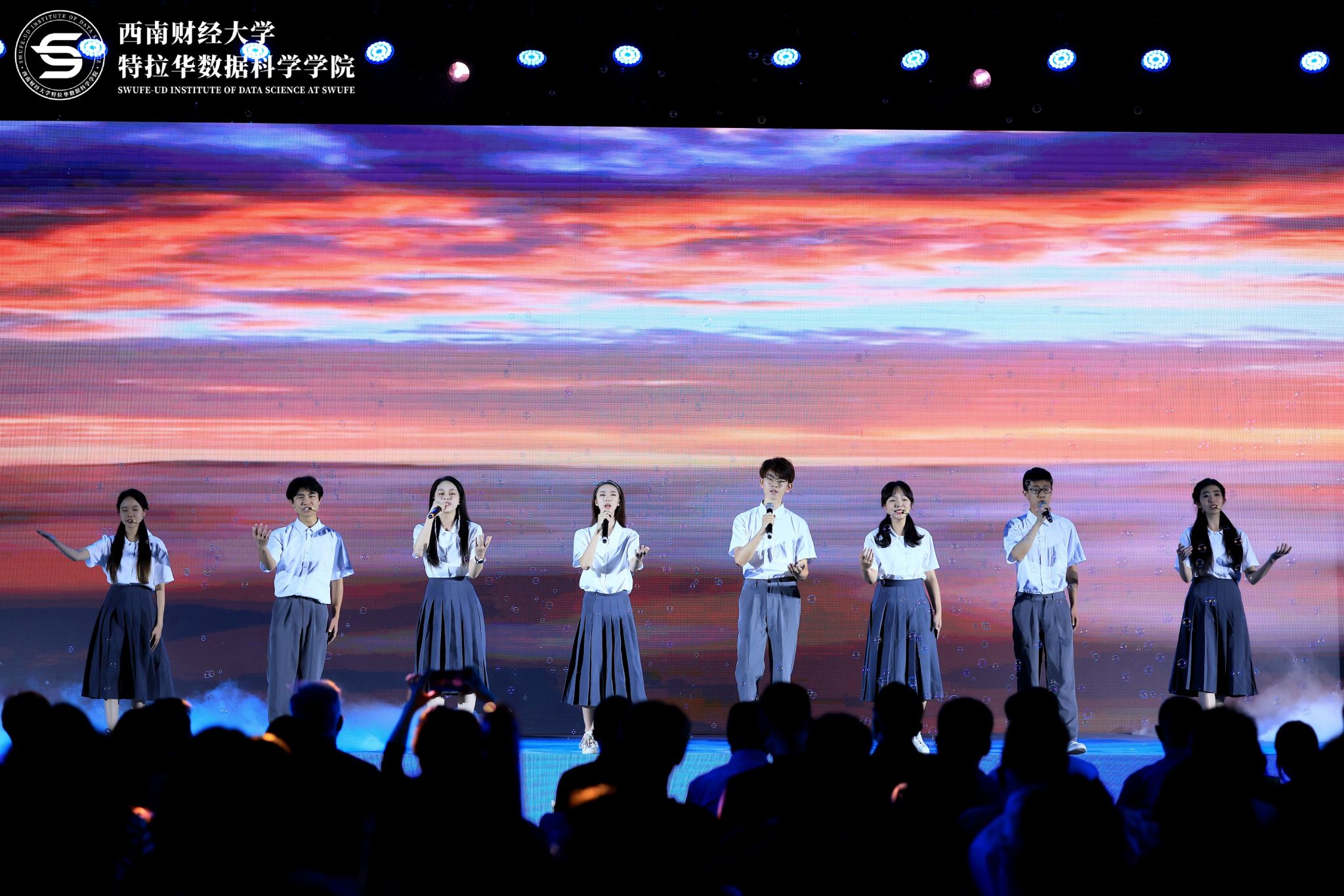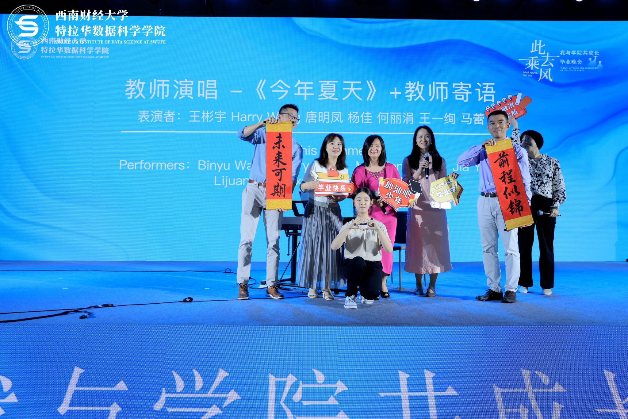 晚会伊始,王彬宇代表学院致辞,向毕业生们表示祝贺,对家长对学院的支持以及中外方同事们的辛勤付出表示感谢。他祝福同学们此去乘风,前程似锦,希望大家能够不忘来时路,胸怀凌云志,时刻铭记“自信自立厚植家国情怀,胸怀天下逐梦世界舞台”的理念,为中华民族伟大复兴的中国梦、为构建人类命运共同体的理想发出西财声音,贡献特院力量。