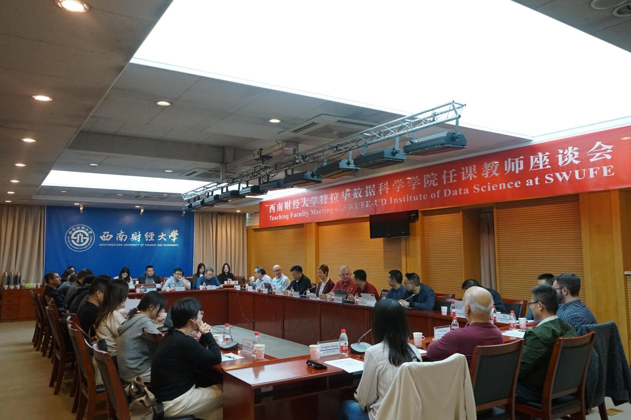 院长杨石磊、副院长兼党总支副书记王彬宇、美方副院长Rick Andrews、特拉华大学勒纳商学院高级助理院长Jennifer Gregan、各专业联合项目主任以及学院28位任课教师参加会议。