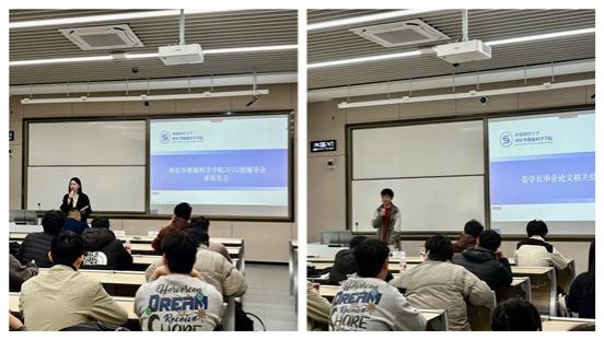 于11月4日组织召开了“2026届本科学生毕业论文(设计)写作动员会暨工作安排宣讲会”。学院党总支副书记王彬宇、教学副院长何熙琼教授、辅导员秦怡老师、教务卢琦老师及优秀毕业生代表娄同学出席会议,为同学们带来了一场内容详实、指导性强的毕业论文(设计)写作指导。